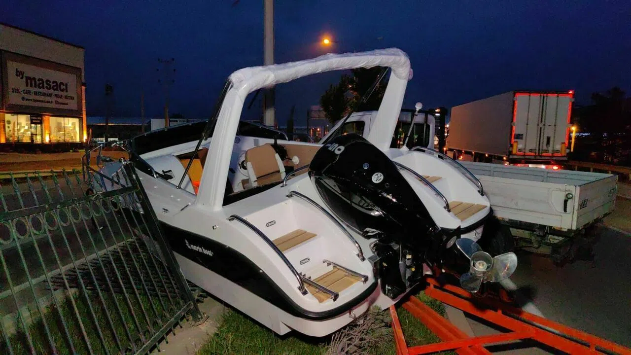 Bursa'da bariyerlere çarpan kamyonetin taşıdığı yarım milyonluk yat hurdaya döndü.