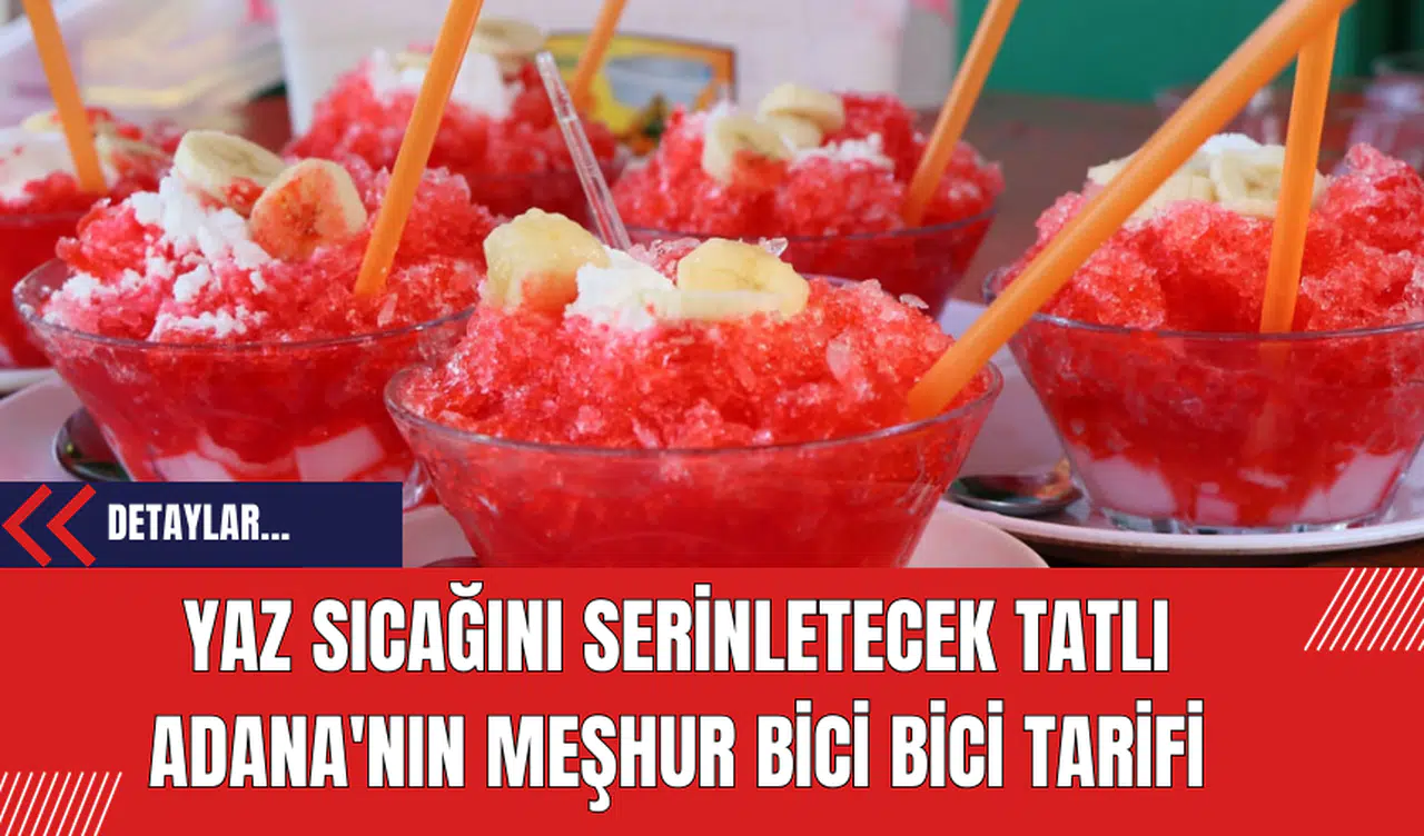 Sıcak havalarda serinlemek isteyenlerin tercih ettiği bu lezzet, Adana'nın geleneksel mutfağının öne çıkan tatlıları arasında yer alır. Yıllardır seyyar satıcılar tarafından satılan bici bici, buzlu ve şerbetli yapısıyla sıcak günlerde ferahlatıcı bir seçenek sunar.