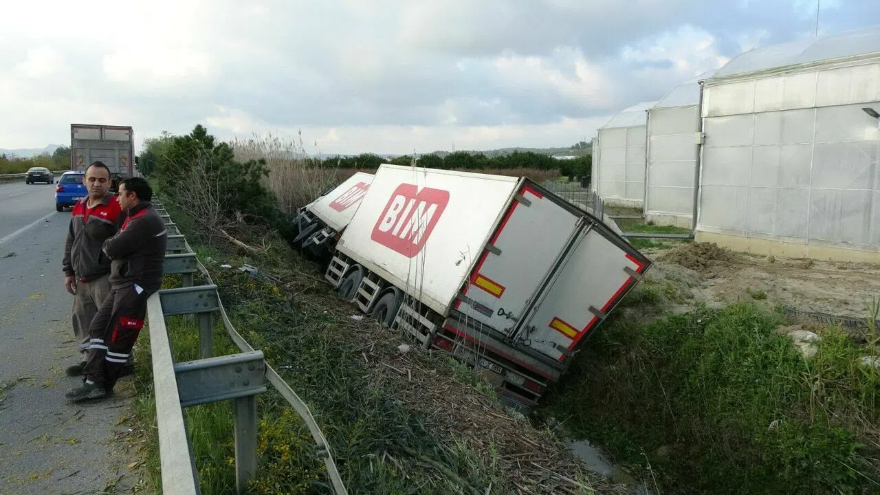 Kaza; Manavgat-Antalya D-400 Karayolunda meydana geldi. Edinilen bilgiye göre; Antalya istikametine gitmekte olan Murat Güney’in kullandığı 34 JC 0852 plakalı BİM markete ait TIR, çelik bariyerlerin üzerine çıkarak yol kenarında bulunan sulama kanalına devrildi.