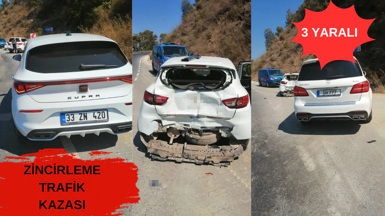 Edinilen bilgiye göre kaza, saat 12.00 sıralarında Zeytinada Mahallesi’nde meydana geldi. Edinilen bilgiye göre; Anamur- Gazipaşa istikametinde seyir halinde olan 33 ZN 420 plakalı otomobilin sürücüsü Rıza K. aynı istikamette seyir halinde olan Ali D.’nin kullandığı SN 777 plakalı otomobili solmak için şerit değiştirdi. SN 777 plakalı otomobil sürücüsü Ali D. de arkadan gelen otomobili fark etmeden önündeki Naci Y. idaresindeki 27 C 6648 plakalı otomobili sollamak istedi. Bu esnada 33 ZN 420 plakalı otomobil, SN 777 plakalı otomobile arkadan çarptı. Çarpmanın etkisiyle savrulan Ali D.’nin kullandığı SN 777 plakalı otomobil de Naci Y. idaresindeki 27 C 6648 plakalı otomobile çarptı. Korkutan kazada araçlarda yolcu olarak bulunan Tülay Y. , Kerem Y. , Hamide D. yaralandı. Olayı gören çevredeki vatandaşlar durumu 112 Acil Çağrı Merkezine bildirdi. İhbar üzerine olay yerine sağlık, polis ve jandarma ekipleri sevk edildi. İlk müdahaleleri olay yerinde yapılan yaralılar ambulansla Gazipaşa Devlet Hastanesine kaldırılarak tedavi altına alındı.