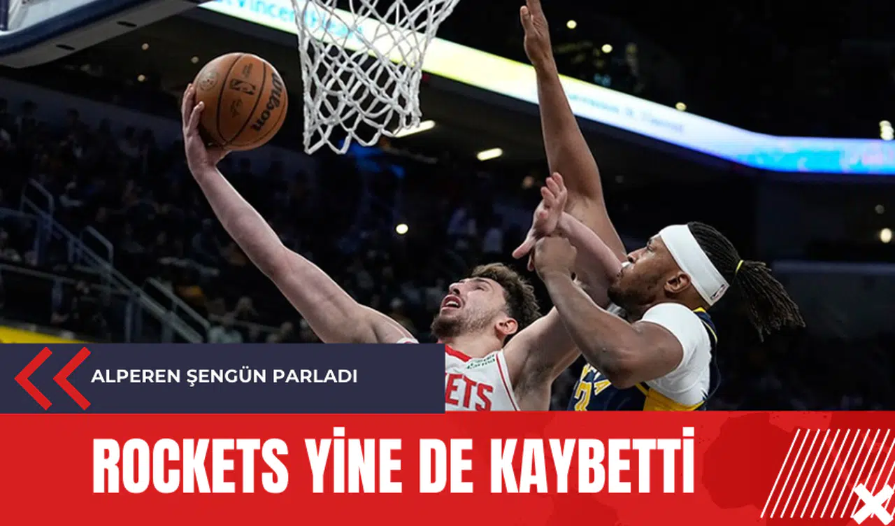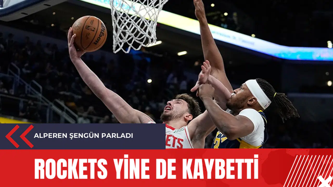 Milli basketbolcu Alperen Şengün'ün formasını giydiği Houston Rockets, NBA normal sezonunun 7. karşılaşmasında Indiana Pacers'a konuk oldu ve mücadeleden 132-129'luk skorla mağlup ayrıldı. Gainbridge Fieldhouse'ta oynanan karşılaşmada Alperen Şengün, 20 sayı, 10 ribaund, 6 asist ve 1 top çalma performansıyla mücadele etti. Rockets'ta Jalen Green 30 sayıyla, Dillon Brooks ise 23 sayıyla katkı sağladı. Indiana Pacers'ta ise Pascal Siakam 29 sayı, Myles Turner 21 sayı ve Tyrese Haliburton 18 sayı, 7 asist ile öne çıkan isimler oldu. Bu sonuçla Houston Rockets, sezonun 27. mağlubiyetini aldı.