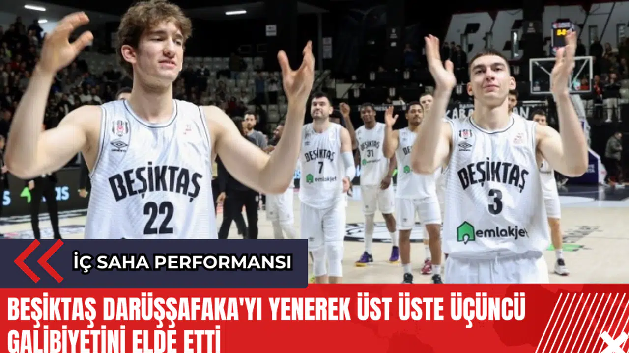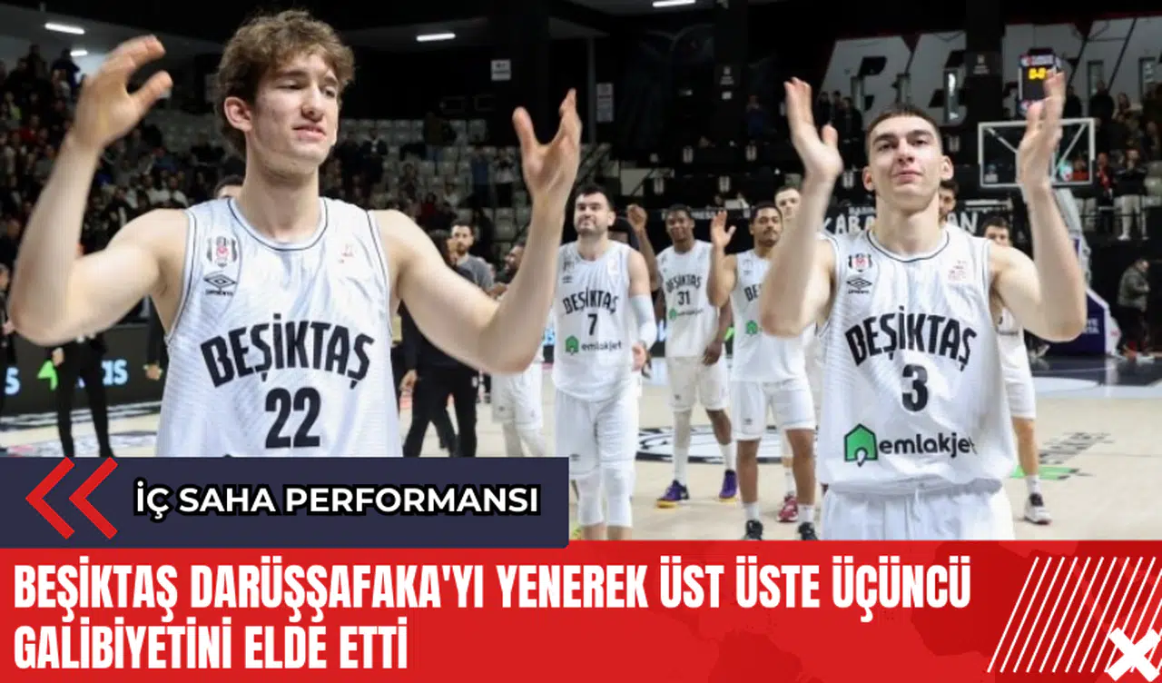 NTV Spor haberine göre, Türkiye Sigorta Basketbol Süper Ligi’nde Beşiktaş , sahasında Darüşşafaka’yı 88-72 mağlup ederek ligde üst üste üçüncü galibiyetini elde etti. Siyah-beyazlılar, bu sezon ligde iç sahada oynadığı tüm maçlardan galibiyetle ayrıldı.