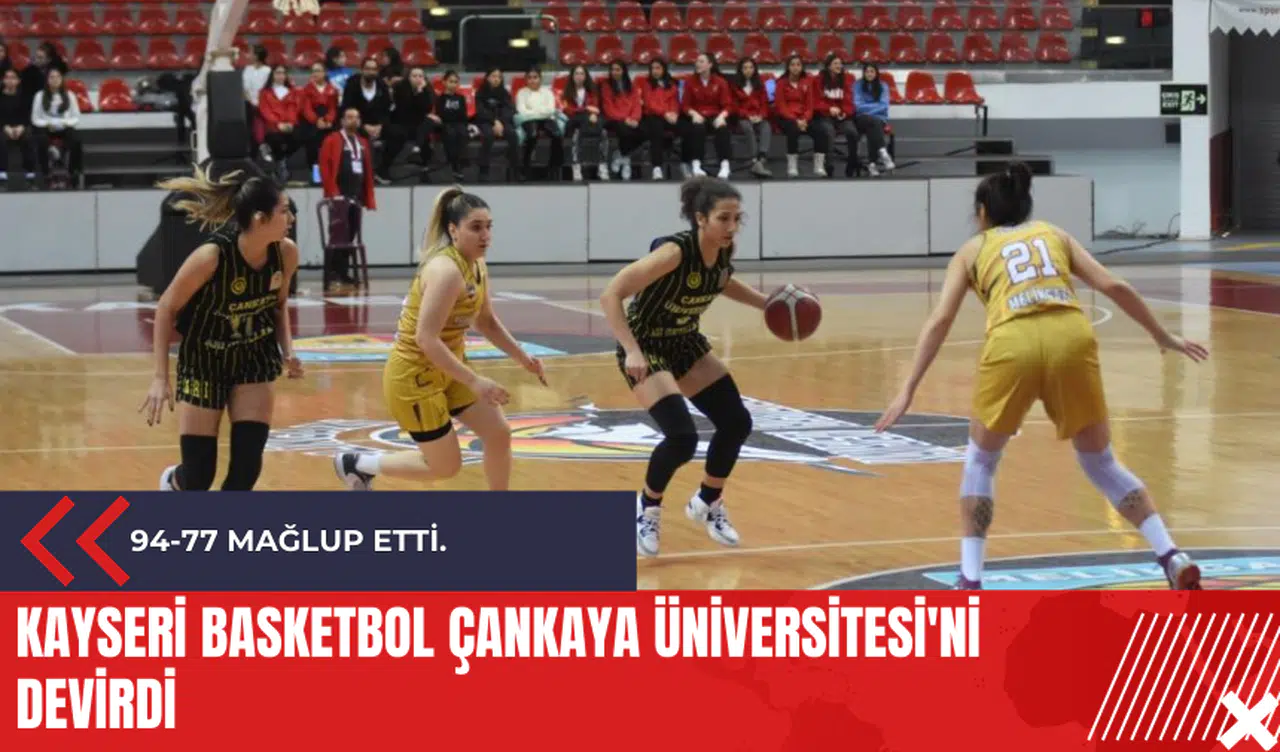 Kayseri Basketbol, ING Kadınlar Basketbol Süper Lig maçında evinde Çankaya Üniversitesi’ni 94-77 yendi. Maç, Kadir Has Spor Salonu’nda oynandı ve hakemler Çağlar Özkan, Burak Aktaş ve Sait Nedim Çelik görev aldı. Melikgazi Kayseri Basketbol’dan Hamby 30 sayıyla öne çıkarken, Çankaya Üniversitesi’nden McCarty 22 sayıyla en skorer isim oldu. Kayseri Basketbol, maçın her periyodunu önde tamamladı ve sonuçta galibiyete ulaştı.