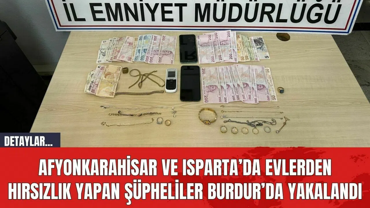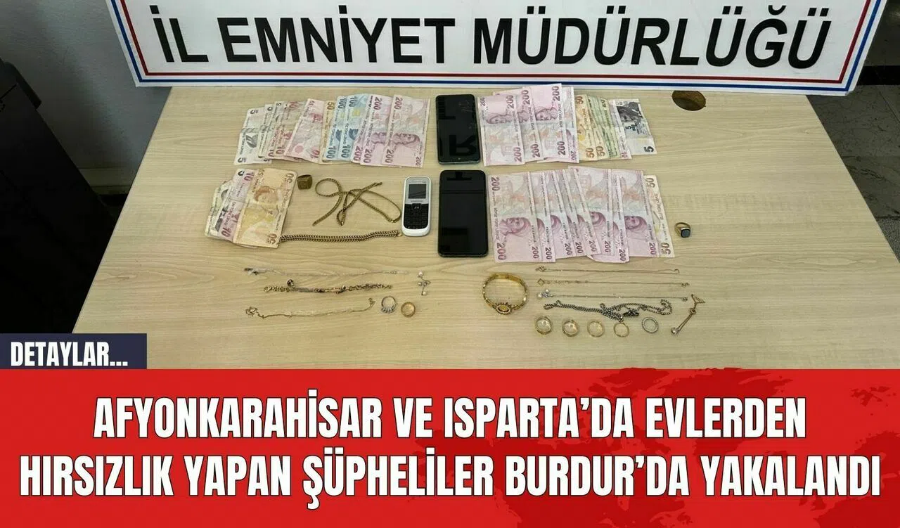 Afyonkarahisar ve Isparta'da ev hırsızlığı yapan şüpheliler, Burdur İl Emniyet Müdürlüğü ekipleri tarafından yakalandı. Şüphelilerin Burdur'a geldikleri anlaşıldı ve yapılan takip sonucunda sanayi sitesinde durduruldular.