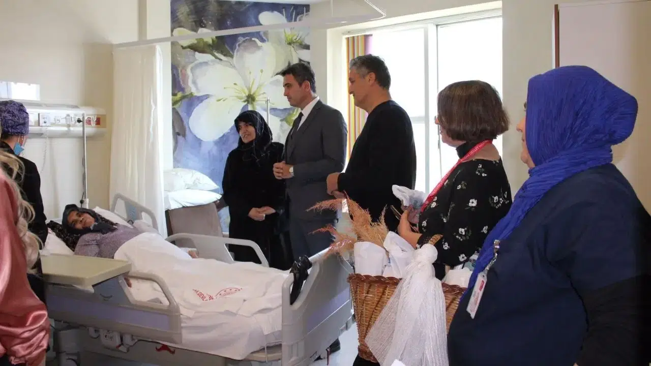 Dünya Hasta Hakları Günü dolayısıyla düzenlenen etkinliğe katılan Bucak Kaymakamı Can Kazım Kuruca, Başhekim Op. Dr. Tanzer Gökkara, hastane yönetimi ve Hasta Hakları Sorumlusu Hülya Alan ile hastaları ziyaret etti.