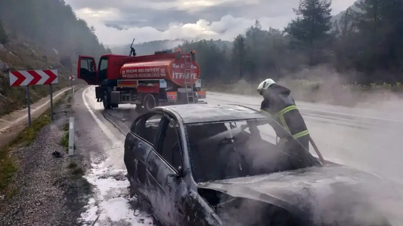 Antalya-Isparta kara yolunda seyir halindeki 07 ACU 706 plakalı otomobilin motor aksamından duman yükseldiğini fark eden sürücü, aracını yol kenarında durdurdu. Sürücünün aracı tahliye etmesinin ardından kısa sürede büyüyen alevler tüm aracı sardı. İhbar üzerine olay yerine ivedilikle itfaiye ve jandarma ekipleri sevk edildi.