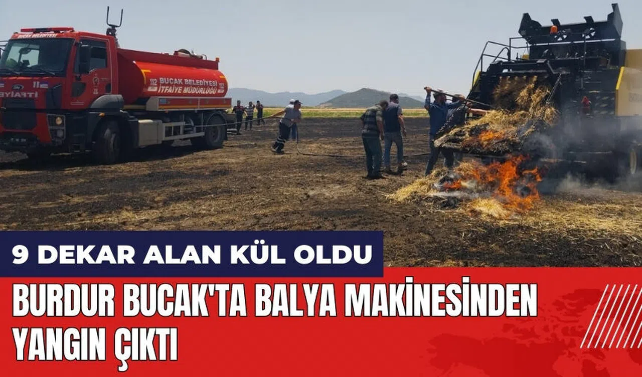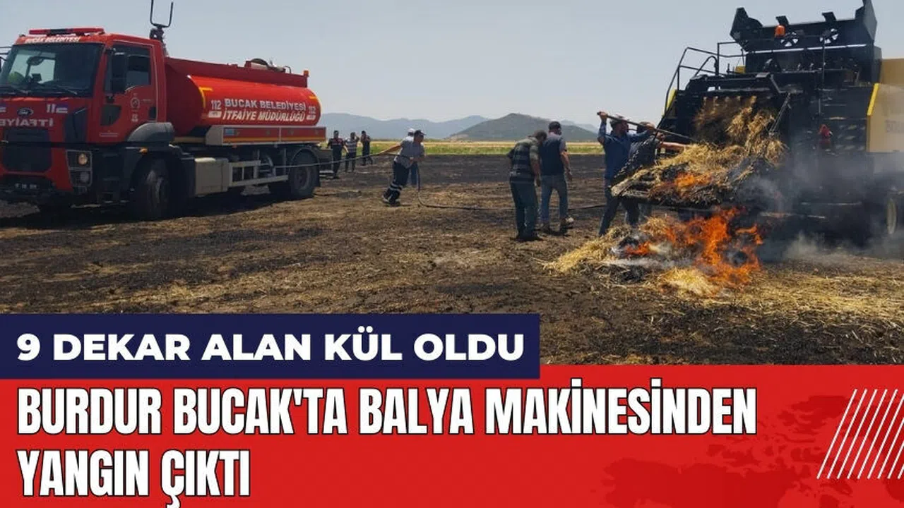 Burdur'un Bucak ilçesine bağlı Üzümlübel köyünde, balya makinesi kullanımı sırasında çıkan yangın büyük hasara yol açtı. Yangının, Murat S.'ye ait tarlada balya yapan Tayfur D.'nin balya makinesinden çıktığı öğrenildi.