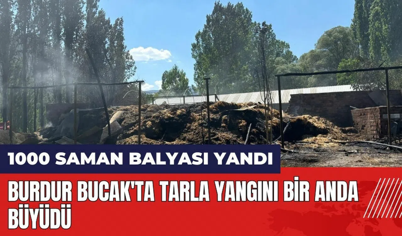 Burdur Bucak'ta tarla yangını bin saman balyasını kül etti