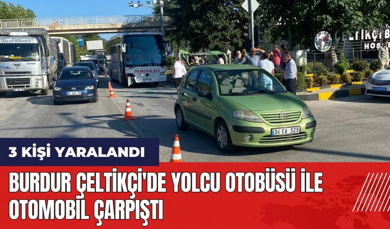 Burdur'un Çeltikçi ilçesinde yolcu otobüsü ile otomobilin karıştığı trafik kaza meydana geldi. Sabah saatlerinde ışıklı kavşakta meydana gelen kazada; Nazmi K. yönetimindeki 45 ZD 400 plakalı Mercedes marka yolcu otobüsü, Burdur'dan Antalya'ya doğru seyir halindeyken kavşağa geldiği sırada kırmızı ışıkta bekleyen Uğur G.'nin kullandığı 34 EA 529 plakalı otomobile çarptı.