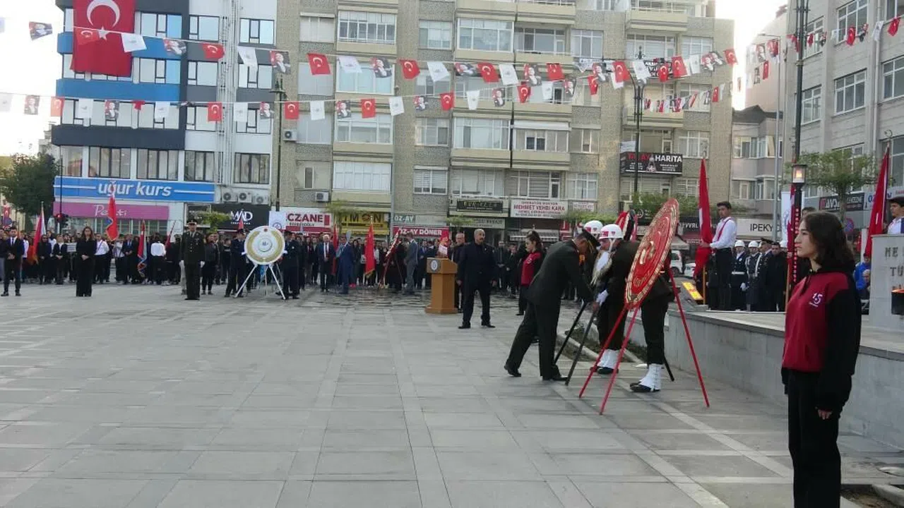 Burdur Cumhuriyet Meydanı'nda düzenlenen törende, iki dakikalık saygı duruşunun ardından Valilik, Garnizon Komutanlığı, Belediye Başkanlığı ve sivil toplum kuruluşları tarafından çelenkler Atatürk büstüne sunuldu.