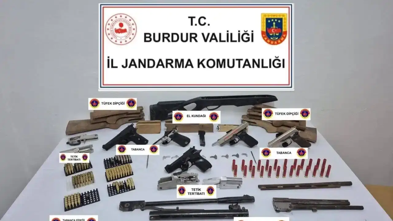 Jandarma tarafından düzenlenen operasyonda çeşitli türlerde silahlar, mühimmatlar ve tarihi eser niteliği taşıdığı belirlenen objeler ele geçirildi. Alınan bilgiye göre, ele geçirilen materyaller arasında; 5 adet tabanca, 1 adet av tüfeği, 6 adet tabanca şarjörü, 128 adet tabanca mühimmatı, 34 adet av tüfeği mühimmatı, 76 adet kurusıkı tabanca mühimmatı, 18 adet obje. 3 adet silah namlusu, 5 adet tetik tertibatı, 9 adet tabanca iğnesi, 1 adet dedektör, 2 adet sikke, 2 adet muhtelif eski eser bulunuyor.