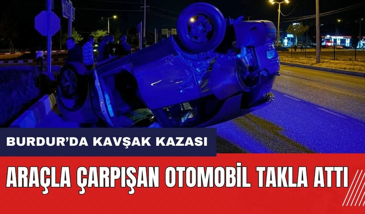 Burdur'da kavşak kazası! Araçla çarpışan otomobil takla attı