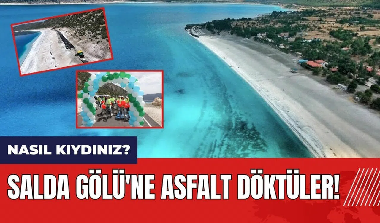 Burdur'un dünyaca ünlü Salda Gölü'ne kapkara asfalt döküldü. Dünyanın doğal harikalarından olan gölün kenarına asfalt dökülmesi büyük tepki çekti.
