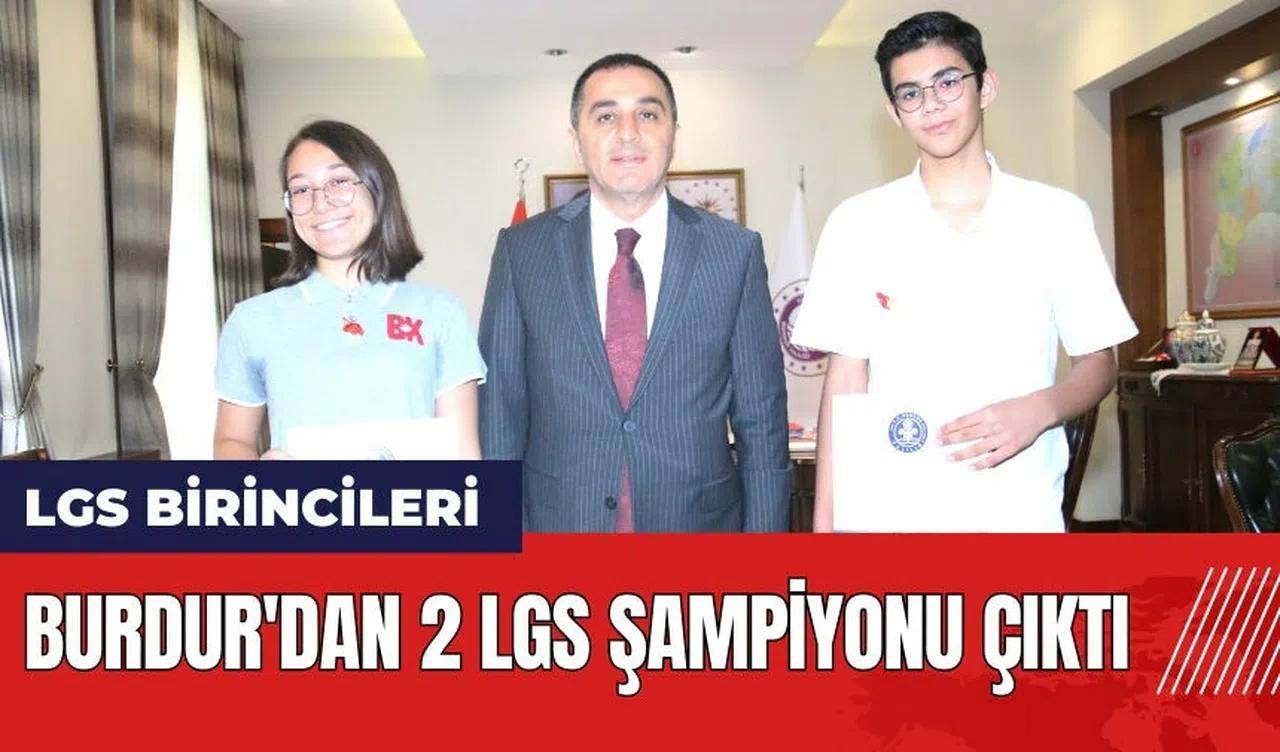 Bu yılki LGS sınavında, Burdur’dan iki öğrenci Türkiye birinciliğini elde etti. Şehit Akif Altay Ortaokulu’ndan Çağlayan Dinçtürk ve Özel Bahçeşehir Koleji’nden Irmak Göker, 500 tam puan alarak büyük bir başarıya imza attı. Burdur Valisi Türker Öksüz, başarılı öğrencileri makamında ağırlayarak tebrik etti ve onlara altın ile akıllı saat hediye etti.