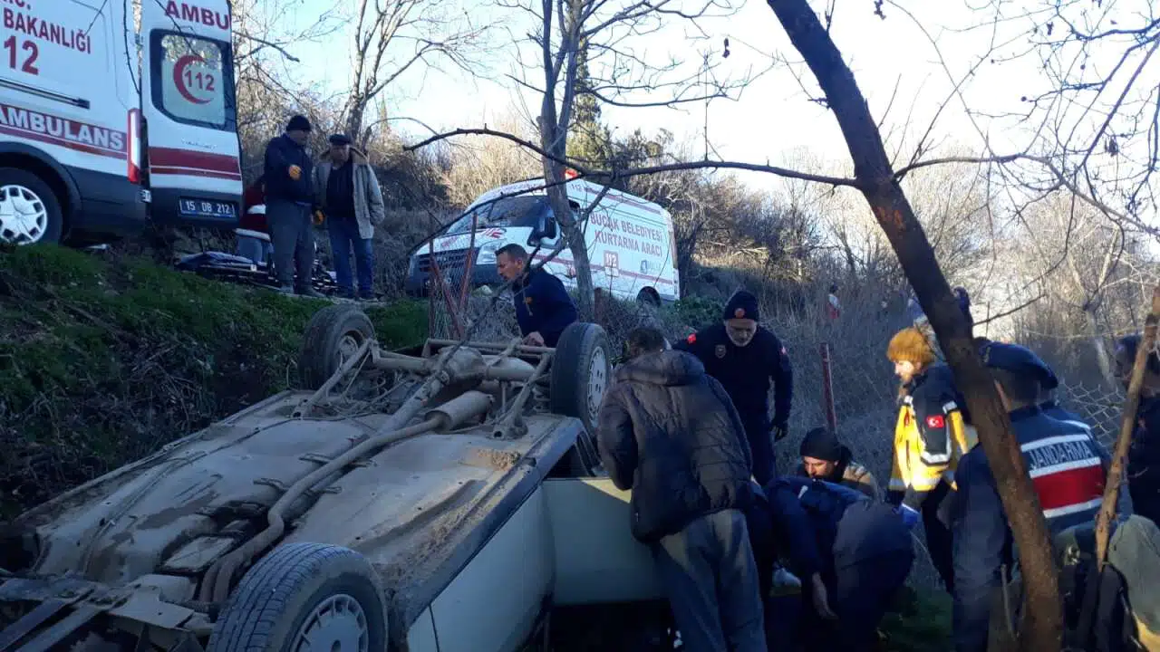 Kontrolden çıkan otomobil takla atarak şarampole devrildi. Kazada sürücü araç içerisinde sıkıştı. Çevredekilerin ihbarı üzerine olay yerine itfaiye, sağlık ve jandarma ekipleri sevk edildi.