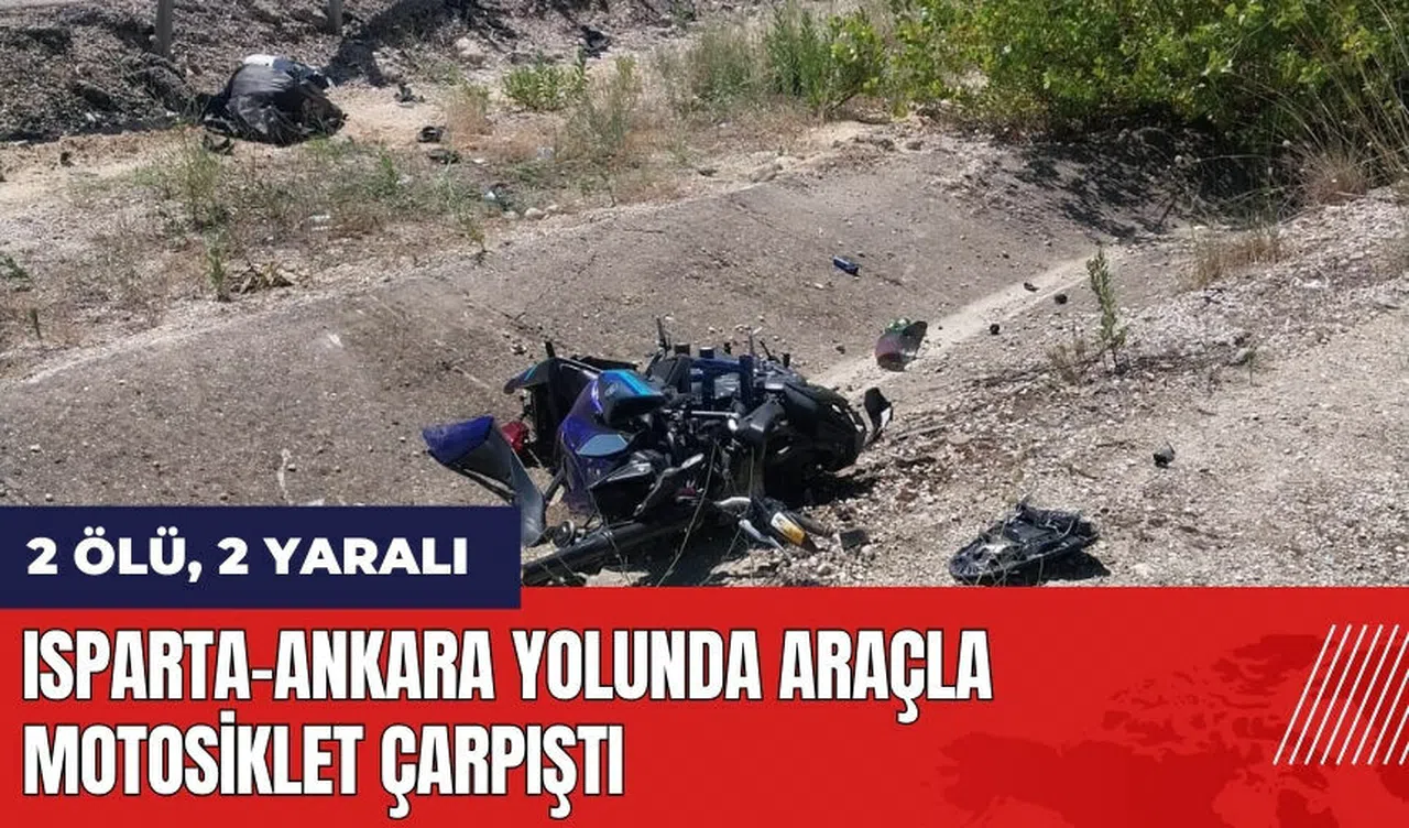Isparta-Antalya kara yolunda hafif ticari araç ile motosikletin çarpışması sonucu meydana gelen kazada, motosiklette bulunan 2 kişi olay yerinde hayatını kaybetti. Hafif ticari araçtaki 2 yaralı ise hastaneye kaldırıldı.