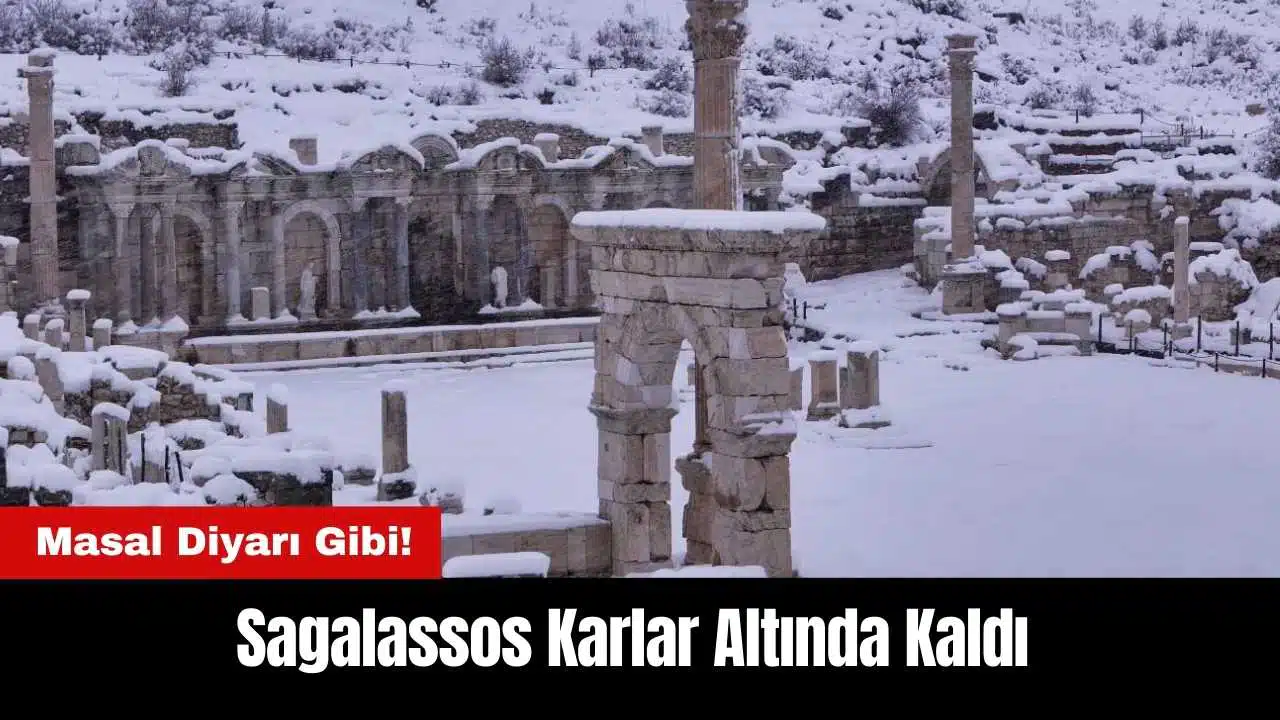 Ağlasun'un Akdağ eteğinde gizlenen antik kent, yılın dört mevsiminde de görsel şölen sunuyor. Bölgeye yağan karın ardından beyaza bürünen Sagalassos dronla görüntülendi. Antoninler Çeşmesi'nin hiç durmadan akan suyu ve antik kalıntıların beyaza bürünmüş hali Sagalassos'u masal diyarına çevirdi.