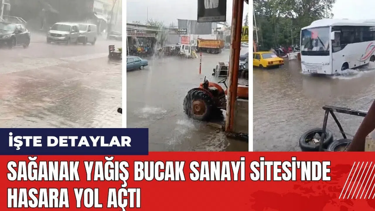 Burdur'un Bucak ilçesinde öğle saatlerinde başlayan sağanak yağış, ilçeyi adeta felç etti. Aniden bastıran yağış, özellikle Bucak Yeni Sanayi Sitesi'ni vurdu. Yoğun yağış nedeniyle yollar nehre dönerken, sanayi sitesinde birçok iş yerini su bastı.