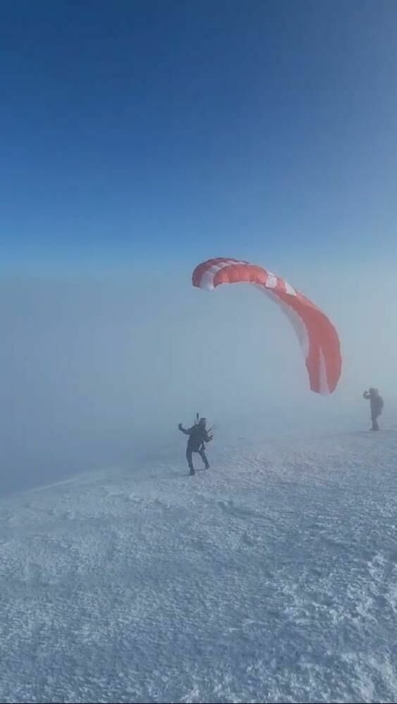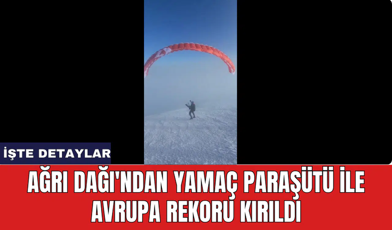 Zorlu hava koşulları ve dik yamaçlara rağmen zirveye çıkan dağcılar, Ağrı Dağı'ndan yaptıkları yamaç paraşütü atlayışıyla Avrupa rekoruna imza attı. Dağcılardan Abdullah Yıldız, ilk defa gerçekleştirilen bu etkinlikle adını tarihe yazdırdı.