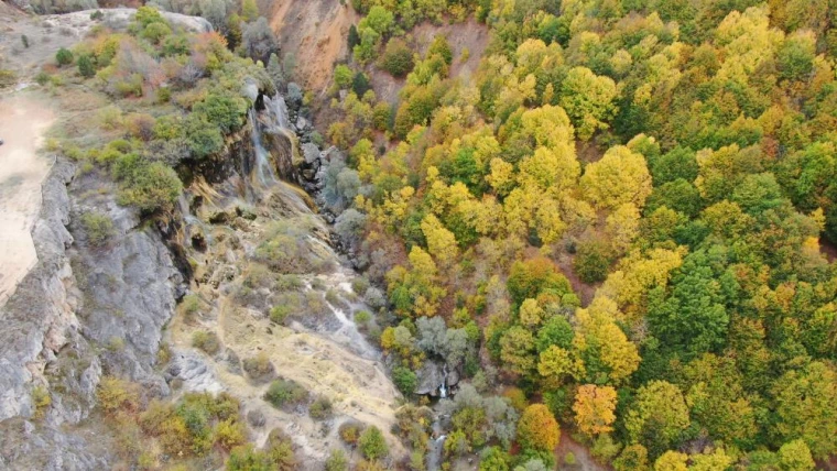 Sivas’ın Doğanşar ilçesi sınırları içerisinde yer alan Dipsiz Göl Şelalesi, doğaseverleri her mevsim farklı bir manzarayla karşılıyor. Kışın buz tutmuş sarkıtları, yazın yeşilliklerle bezenmiş doğasıyla kendine hayran bırakan şelale, sonbaharda ise sarı, turuncu ve kahverenginin tonlarıyla adeta yağlı boya tablosu gibi görünüyor. Yaklaşık 50 metre yüksekten dökülen serin sular, ziyaretçilere unutulmaz anlar yaşatıyor.