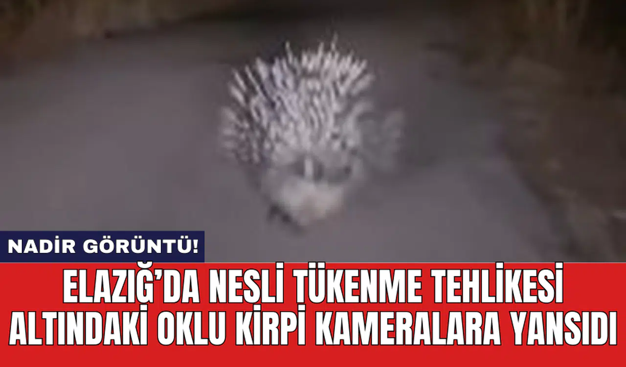 Elazığ'ın Hıdırbaba köyünde, nesli tükenme tehlikesi altında olduğu için kırmızı listede bulunan oklu kirpi görüntülendi. Afrika'da yaşadığı bilinen ve nadiren Türkiye'de de görülen oklu kirpi, bir sürücü tarafından cep telefonu kamerasıyla kaydedildi.