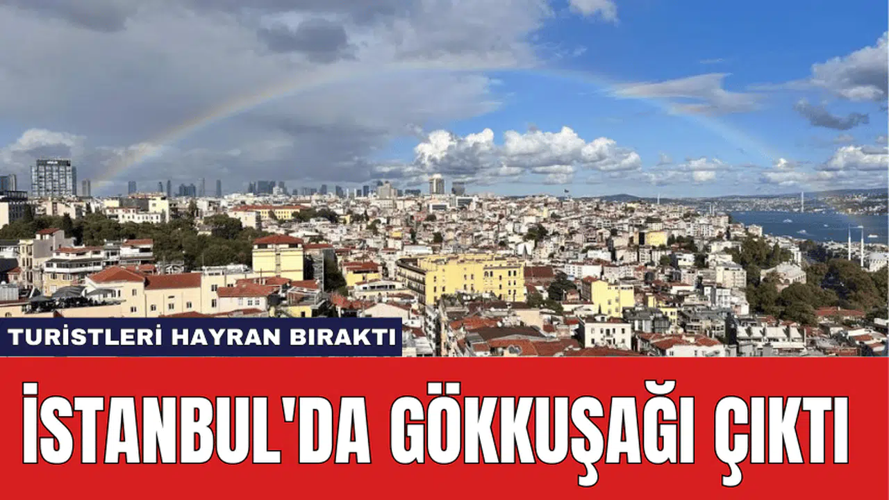 Galata Kulesi’ni ziyaret eden turistler, gökkuşağı sürpriziyle karşılaştı. İstanbul’un tarihi simgelerinden biri olan kuledeki manzara, gökkuşağıyla birleşince turistler bu anları cep telefonlarıyla görüntülemeyi ihmal etmedi. Gökkuşağı, kentin güzelliğine güzellik kattı.