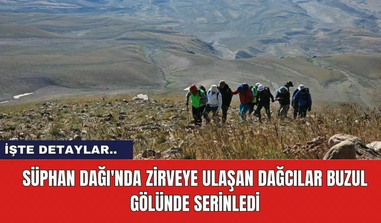 Süphan Dağı’na zirve tırmanışı yapan bir grup dağcı, zirveye ulaştıklarında karşılaştıkları buzul gölünde yüzmenin keyfini çıkardı. Dağcılar, zorlu tırmanışın ardından buz gibi sularda yüzerek yorgunluklarını attılar. Dağcılardan Şener Şükrü Yiğitler, zirvede buzulların arasında yer alan göletleri görünce dayanamadıklarını ve suya girdiklerini belirtti. Yiğitler, 'Bu buz gibi suyun şifa kaynağı olduğunu düşünüyoruz. Süphan Dağı’nın eşsiz doğasında bu deneyimi herkesin yaşamasını tavsiye ederiz' dedi.