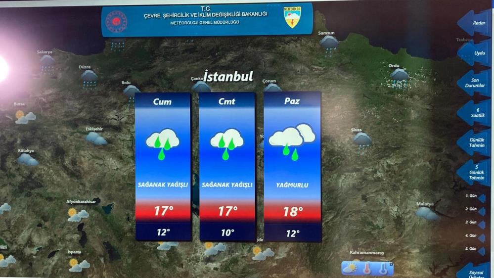 İstanbul’da hafta sonu boyunca sağanak yağış beklendiğini belirten Macit, ''Ankara'da 12 ila 13 derece civarında hava sıcaklığı bekliyoruz hafta sonunda. En düşük sıcaklık ise 2 ila 3 dereceye kadar düşecek. İstanbul'da sağanak yağışımız devam ediyor. Hava sıcaklığı da 11 ila 17 derece arasında olacak. İzmir'de yağış beklemiyoruz. Hava sıcaklığını da 10 ila 18 derece arasında bekliyoruz'' dedi.