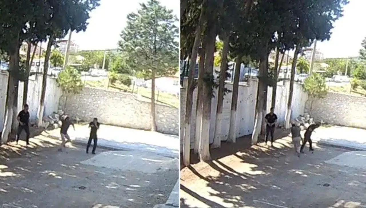 Bir süre sonra, elinde sopayla okul bahçesine gelen Başkan Hayla, zabıta memurlarına saldırdı. Okulun güvenlik kameralarına yansıyan görüntülerde, Hayla’nın zabıta memurlarına koşarak yaklaşarak birinin sırtına sopayla vurduğu anlar yer aldı. Sopanın kırılmasından sonra Hayla’nın memurları okuldan uzaklaştırdığı görüldü.