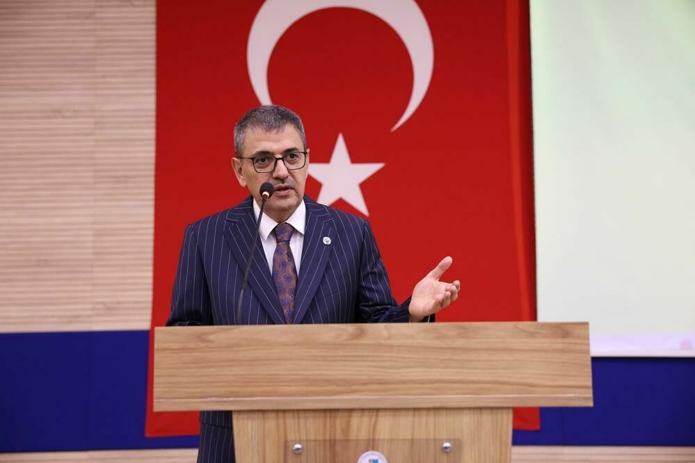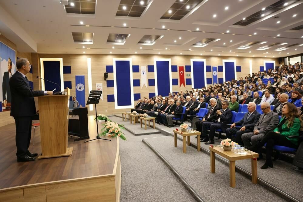 Rektör Prof. Dr. Ahmet Kutluhan yaptığı konuşmada şunları kaydetti: 'Öğretmenlerimiz bize neyi öğretti? Diye sorduğumuzda cevabı bugün çok net verebiliyoruz. Çünkü Türkiye Cumhuriyetimizin 100. yılını yaşıyoruz. Eğer öğretmenler öğrencilerine Cumhuriyetimizi, Vatanımızı, Devletimizi, milli ve dini değerlerimizi öğretmeseydi işte hepimizin gördüğü dünyadaki manzaralardan bir manzara da bizler görmeyecektik. Onun için bu uğurda çalışmış, şu anda rahmetli olmuş, şehit olmuş ve şu an da yine çalışan tüm öğretmenlerimize gerçekten minnet borçluyuz. Bugün Aybüke öğretmen şehit olmuştur. Nice öğretmenlerimiz, ben doğu görevi de yaptığım için çok iyi biliyorum. Doktor hedefte olmazdı çünkü ihtiyaç vardı. Ama öğretmen milletin birliği ve vatanın bölünmezliğini öğrettiği için hedefteydi. Bunun için bizler öğretmenlerimizi anmakla, yâd etmekle kalmamamız lazım. Gerçekten onlar her zaman elleri öpülesi kişilerdir ve onların sözleri her zaman doğrudur. Yetişmemizde çok büyük rolleri vardır. Öğretmen olacak arkadaşlara söylüyorum. Her öğretmenin öğrencisine verdiği bir bilgi vardır ama ayrıca bir ruh vardır. Çünkü o öğretmen de aynı kapsam içinde yetişiyor. Yeni ufuklarla ülkemiz gerçekten iç dünyasını bitirmiş, Türkiye Cumhuriyeti dünyaya açılmış, dünyada barışın bir noktası olmuştur. Geçmişimizde Osmanlı Devleti var, dünyayı yaklaşık 500 yıl yönetmiş hiç kimsenin burnu kanamamış. Dört yüz elli yıl Filistin toprakları bizim yönetimimizdeydi kimsenin burnu kanamadı. Ama şimdi günümüzde ne adalet var ne insanlık var, ne vicdan var. Çünkü bunların öğretmenleri sakat. Öğretemiyorlar demek ki. Onların öğretilerinde adalet yok, insanlık yok, vicdan yok, başka şeyler var. Kötülükler var. Öldürmekten zevk alan öğretmenler var demek ki Bizde çok şükür adaleti öğreten, barışı öğreten öğretmenlerimiz var. Onun için Türkiye Cumhuriyeti’nin geleceği nice yüz yıllarda saklıdır ve olacaktır. Üniversitemiz hayatın rehberi dedik. Her alanda üniversitenin rolü olsun dedik. Olmak da zorunda. Hayatın rehberi olan üniversitemiz aslında öğretmenlerimizin rehberliği ile bu işi yapıyor. Öğrencinin rehberi öğretmen olduğu için biz üniversite olarak öğrendiklerimizi, bildiklerimizi şehirle, insanla ve insanlıkla paylaşmak istiyoruz. Üreten öğretmenlerimiz, üreten üniversiteyi oluşturmuşlardır. Bu üniversitenin oluşumda da yine öğretmenlerin büyük rolü vardır. Allah onlardan razı olsun. Tüm öğretmenlerimizi tebrik ediyor, kutluyorum. Geleceğe daha adaletle, daha barışla bakalım. Dünyaya barışı Türk milleti getirecektir. Bunun şuuru ile hareket edelim. Hiçbir şeyden yılmayalım. Öğretmenler Gününüz tekrar kutlu olsun' diye konuştu.