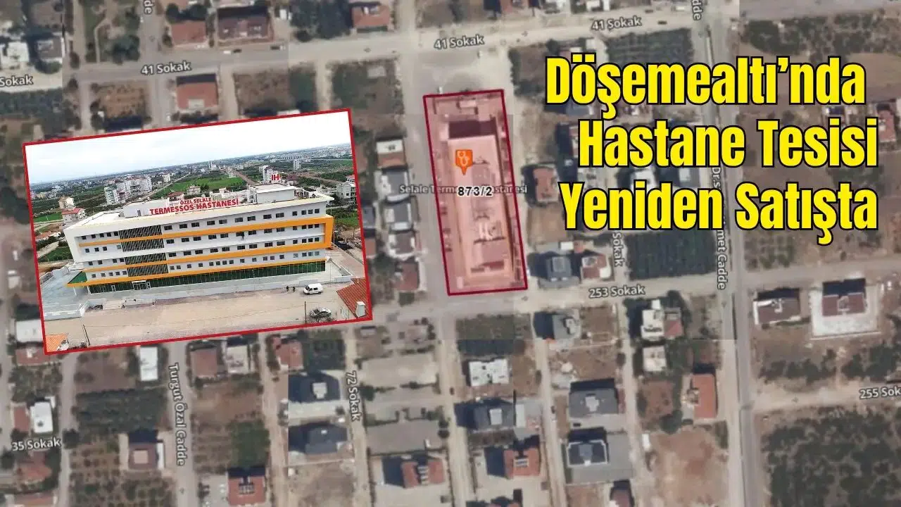 Antalya'da Döşemealtı Belediyesi’nin iştiraki Döşemeyol A.Ş., Döşemealtı'nda bulunan Özel Termessos Hastanesi binasını satışa çıkardığını ilanla duyurdu.