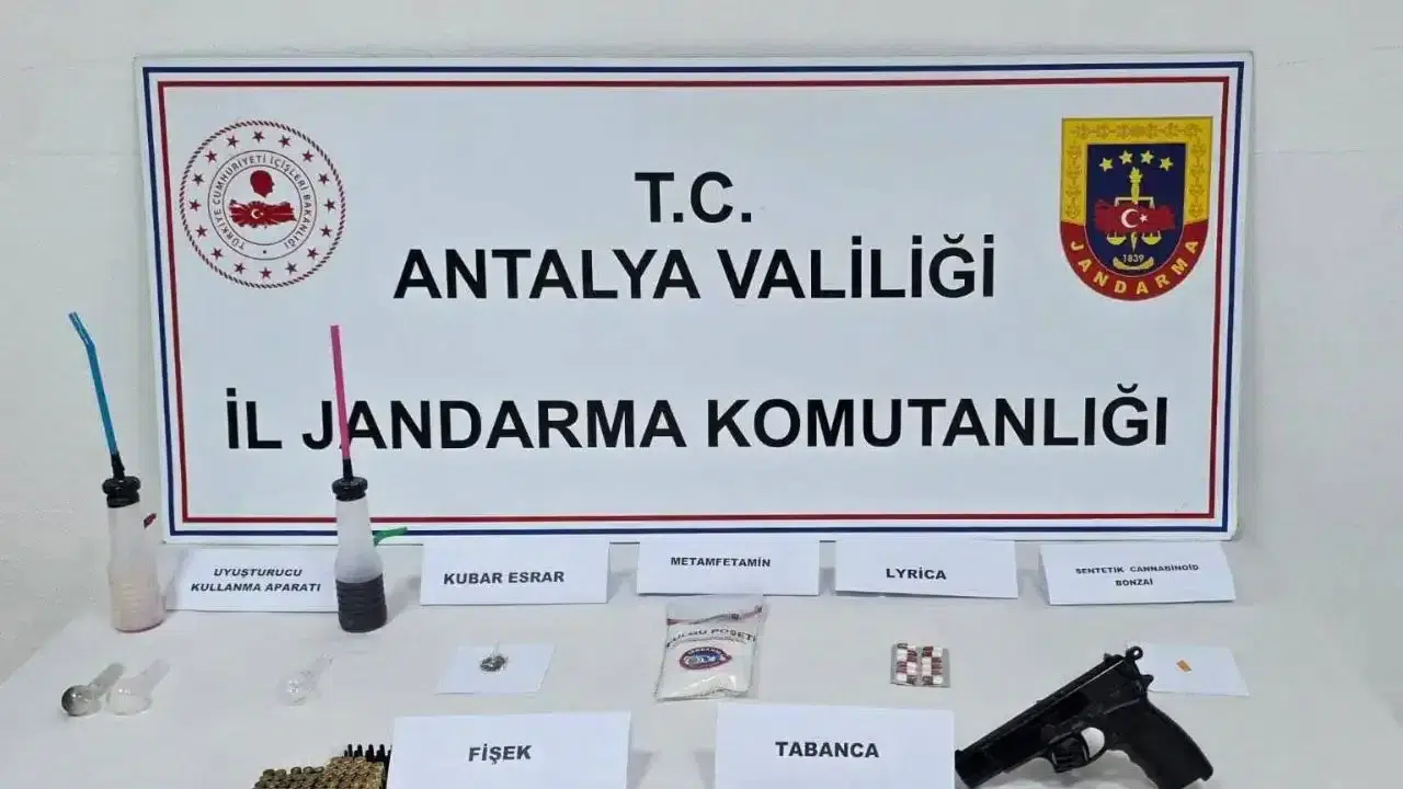 Antalya'da Jandarma, Döşemealtı ilçesinde 4 şüphelinin ev ve araçlarına düzenlenen operasyonda uyuşturucu ve silah ele geçirdi.