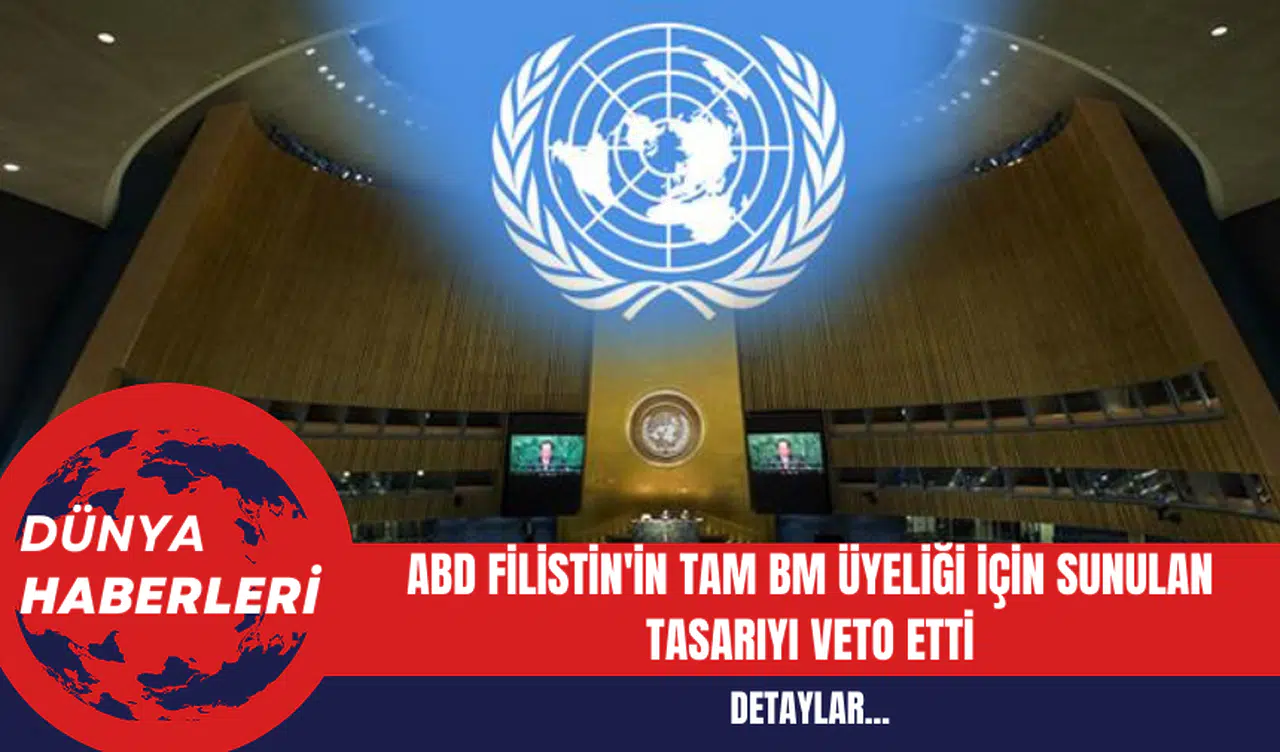 ABD, Birleşmiş Milletler Güvenlik Konseyi'nde (BMGK), Filistin'in Birleşmiş Milletler'in tam üyesi olması için sunulan karar tasarısını veto ederek sürecin ilerlemesini durdurdu.