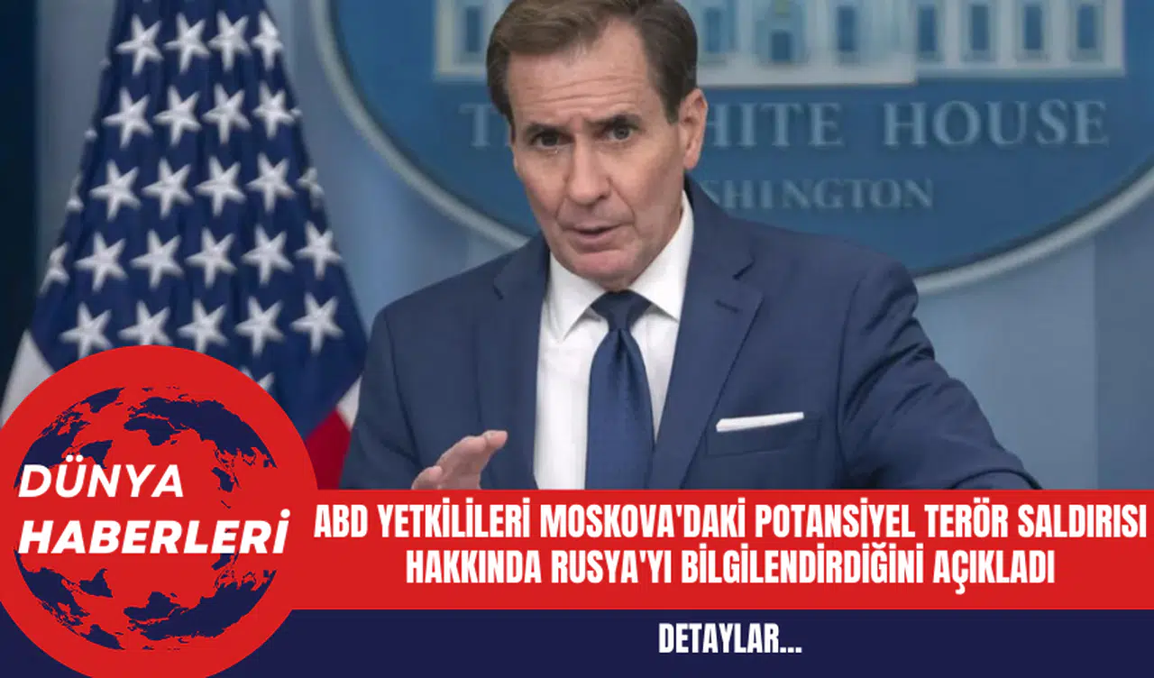 ABD Ulusal Güvenlik Konseyi Sözcüsü Adrienne Watson, Rusya'da 115 kişinin hayatını kaybettiği konser salonu saldırısına yönelik sosyal medya hesabından paylaşım yaptı. Sözcü Watson, "ABD hükümeti bu ayın başlarında Moskova'da konserler de dahil olmak üzere büyük etkinlikleri hedef alan planlı bir terör saldırısı hakkında bilgi sahibi oldu" dedi.