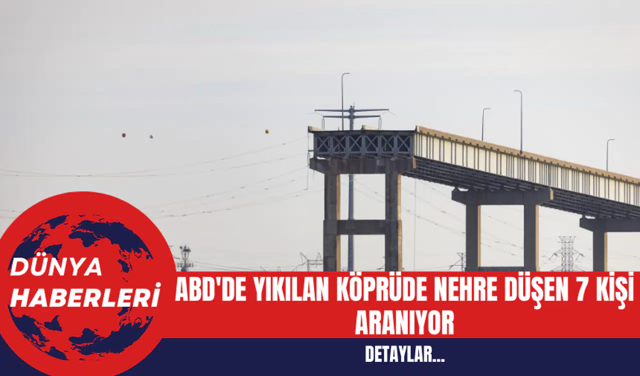 ABD'nin Maryland eyaletinde, Baltimore kentinde Patapsco Nehri üzerinde bulunan Francis Scott Key Köprüsü, bir kargo gemisinin çarpması sonucunda yıkıldı. Olayın ardından nehre düşen 7 kişi için arama kurtarma çalışmaları başlatıldı. Baltimore İtfaiye Şefi James Wallace, gazetecilere yaptığı açıklamada, 2 kişinin kurtarıldığını ancak birinin durumunun ağır olduğunu belirtti. Wallace, kaybolan 7 kişi için arama kurtarma çalışmalarının devam ettiğini ifade etti.