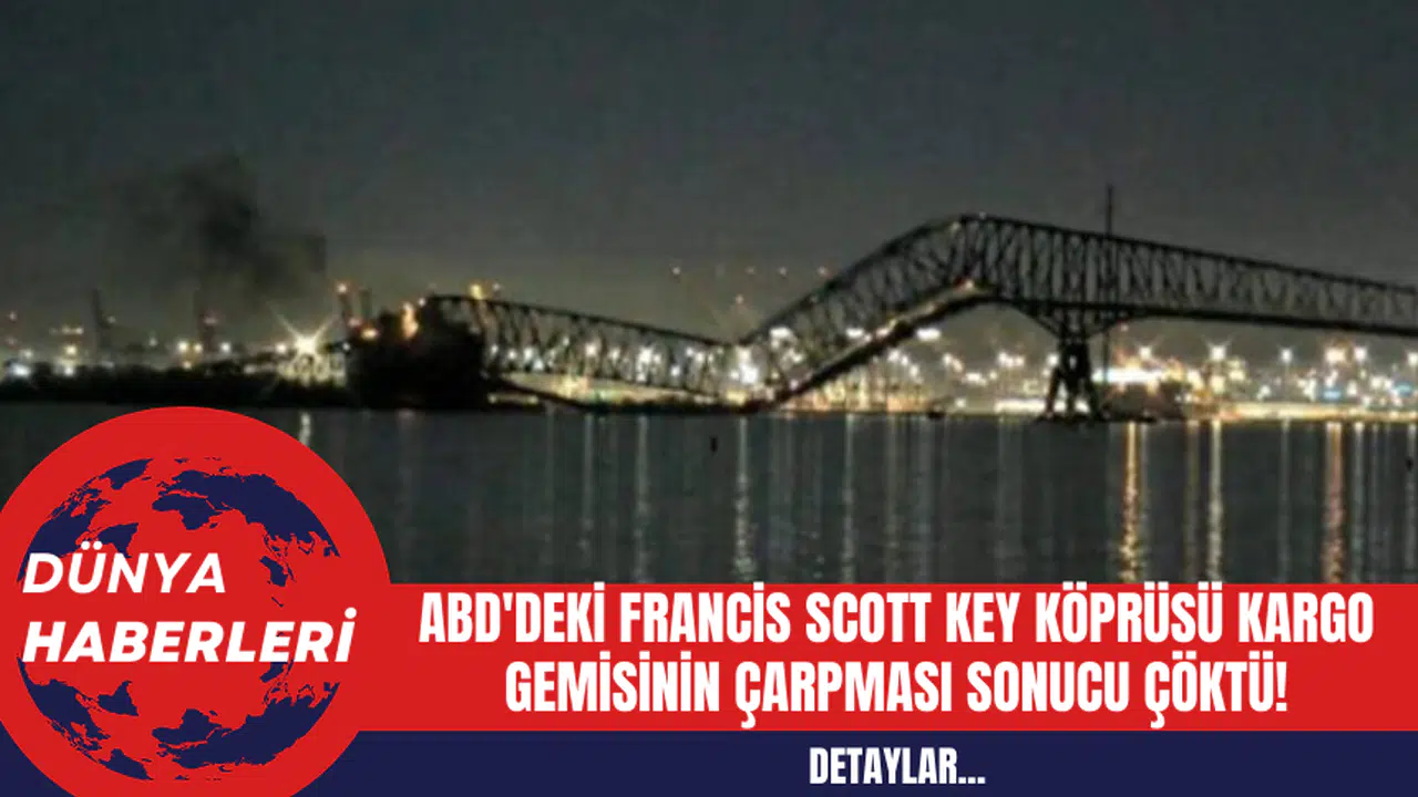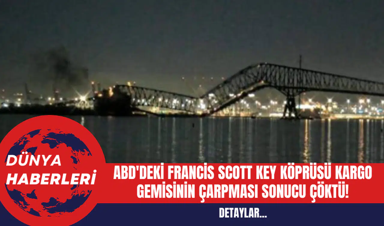 ABD'nin Maryland eyaletinde, Baltimore şehrinde bulunan ve eyaletin en büyük şehri olan Francis Scott Key Köprüsü, bir kargo gemisinin çarpması sonucu çöktü. Köprü, çarpmanın ardından suya düşen araçlarla birlikte çöktü. Olay anında köprüde bulunan 7 inşaat işçisi ve dört sivil aracın altında kalabileceği belirtiliyor.