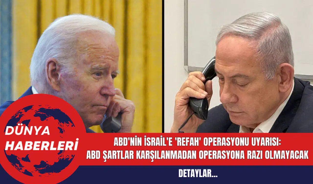 ABD Başkanı Joe Biden, İsrail Başbakanı Binyamin Netanyahu'ya yaptığı telefon görüşmesinde, Filistinli mültecilerin bulunduğu Refah'a yönelik bir kara operasyonuna karşı olduklarını açıkça ifade etti.