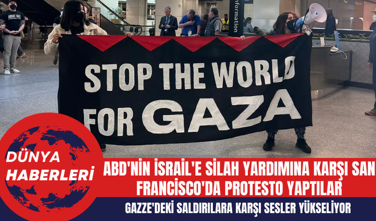 Gazze'de devam eden saldırılar sırasında, bir grup ateşkes talep ederek ve ABD'nin İsrail'e sağladığı askeri yardımları durdurma çağrısında bulunmak için San Francisco Uluslararası Havaalanı'nda bir araya geldi.