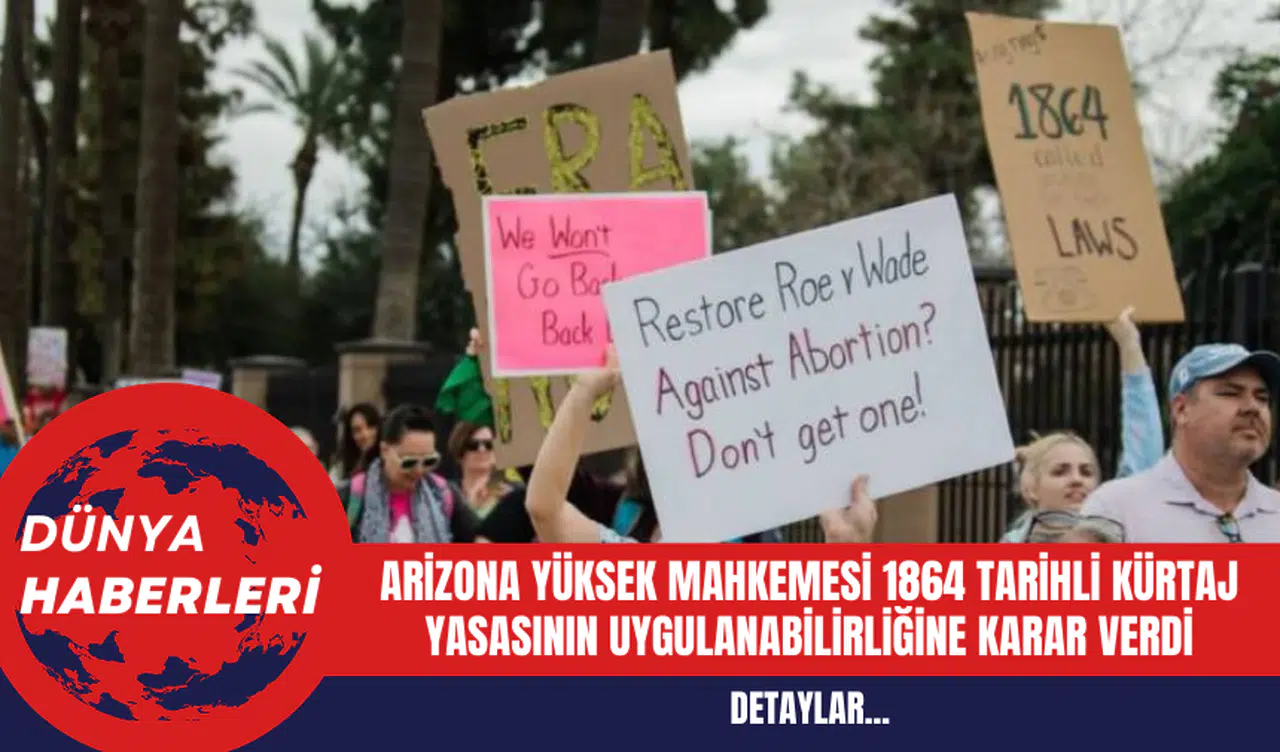 ABD'nin Arizona eyaletindeki Yüksek Mahkeme, kürtajı neredeyse tamamen yasaklayan 1864 tarihli yasanın uygulanabilir olduğuna hükmetti. Bu karar, eyaletin tüm kliniklerinin kapanmasına neden olabilir.