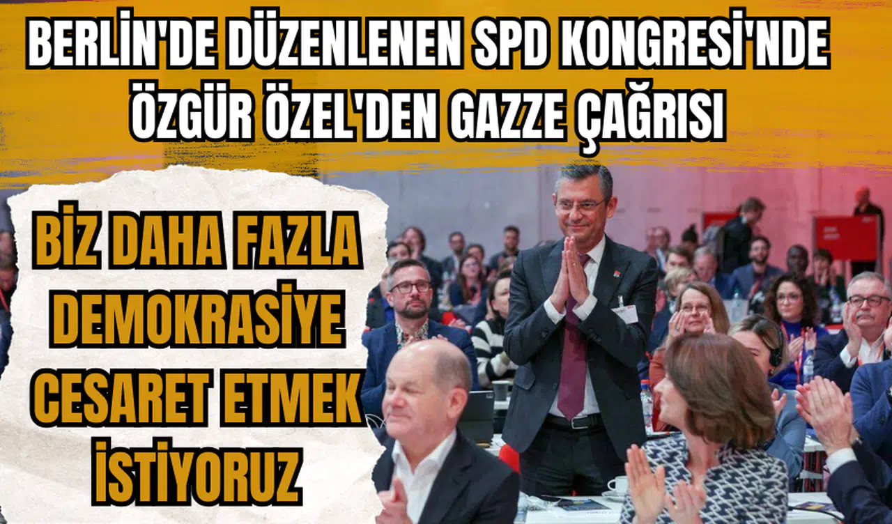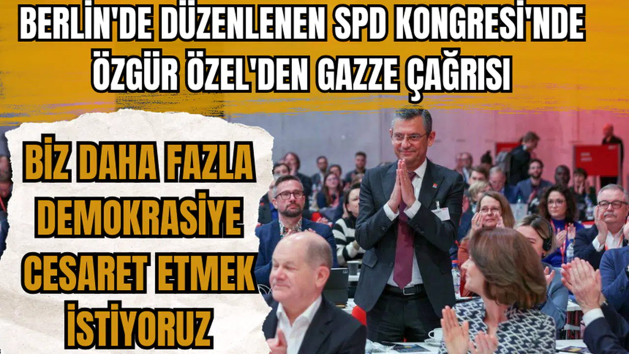 CHP Genel Başkanı Özgür Özel, Almanya'nın başkenti Berlin'de gerçekleşen Almanya Sosyal Demokrat Partisi (SPD) olağan kongresine iştirak etti. Özel, kongre kapsamında Almanya Başbakanı Olaf Scholz ile bir görüşme gerçekleştirdi. SPD Kongresi'nde yaptığı konuşmada Özgür Özel, "Cumhuriyet Halk Partisi olarak, Sosyalist Enternasyonal ailesinin Başkanı Pedro Sanchez’in ortaya koyduğu tutumu destekliyoruz. Birleşmiş Milletler kararlarına ve uluslararası hukuka uyulması, sivil ölümlerine yol açan saldırıların derhal durdurulması ve kalıcı bir ateşkesin sağlanması çağrımızı yineliyoruz" ifadelerini kullandı.