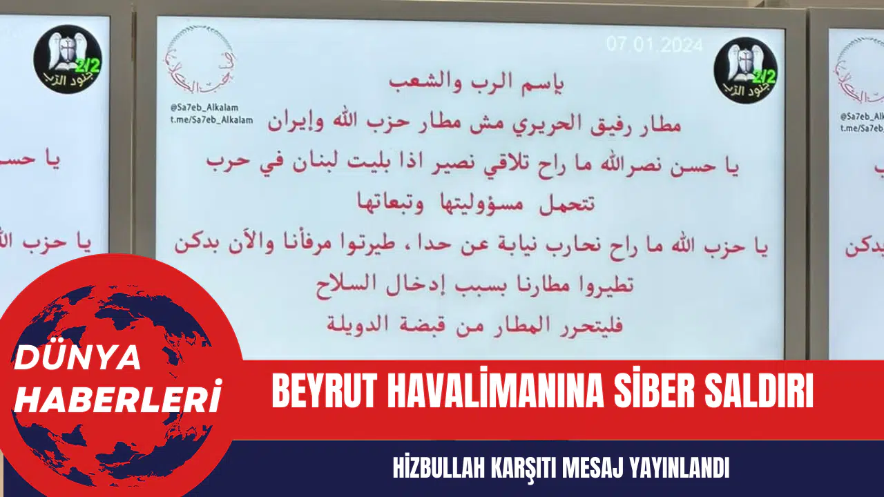 Lübnan'ın başkenti Beyrut'taki Beyrut Havalimanı, siber saldırıya maruz kaldı. Bilgisayar korsanları, havalimanı içerisinde uçakların kalkış ve varış saatlerini gösteren ekranlarda Hizbullah karşıtı bir mesaj yayınladı. Mesajda, Hizbullah'ın Lübnan'ı İsrail ile topyekun bir savaşın eşiğine getirmekle suçlandığı belirtilirken, Soldiers of God ve The One Who adlı bilgisayar korsanı grupların logoları dikkat çekti.