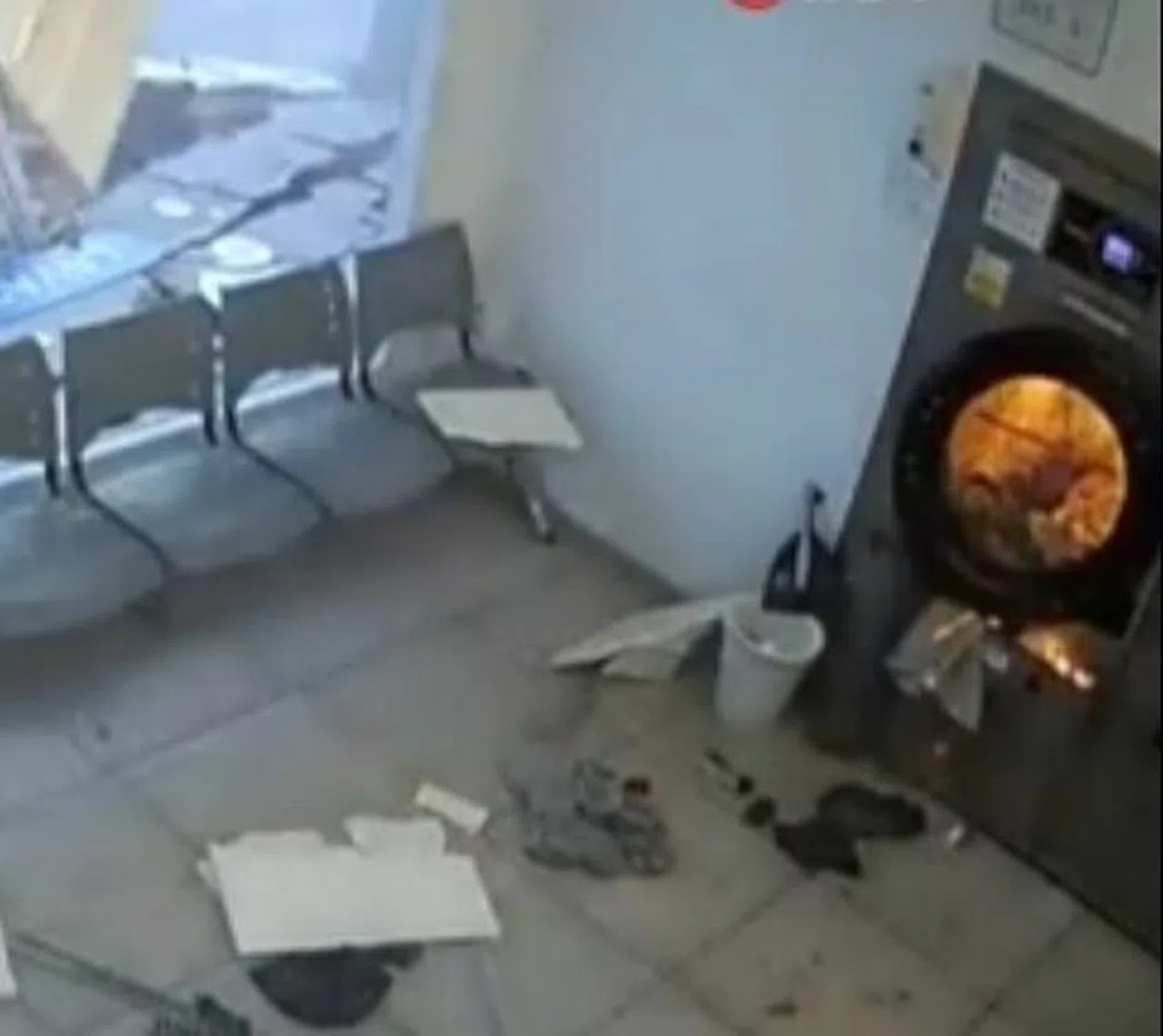 İspanya'da bir çamaşırhanedeki çamaşır makinesi patladı. Çamaşır makinesi çalışırken elinde çantayla çamaşırhaneden çıkan adam, patlamadan saniyelerle kurtuldu.