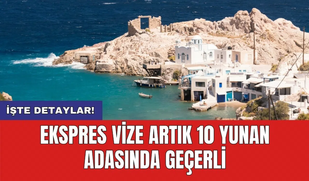 Yunanistan'ın Ankara Büyükelçiliği sosyal medya hesabından yapılan duyuruya göre, Türk vatandaşlarına yönelik olarak başlatılan ekspres vize uygulamasının geçerli olduğu ada sayısı artırıldı. Bu kararla birlikte, önceden sadece İstanköy (Kos), Midilli (Lesvos), Rodos, Sisam (Samos) ve Sakız (Chios) adalarına seyahat edebilen Türkler, artık İleryoz (Leros), Limni (Limnos), Kelemez (Kalimnos), Meis (Kastelorizo) ve Sömbeki (Simi) adalarında da ekspres vize avantajından faydalanabilecekler.