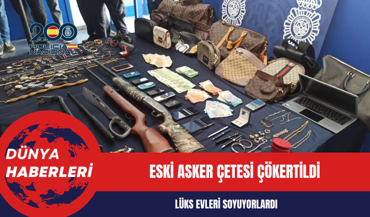 İspanya'nın güneyindeki Malaga kentinde lüks evleri soyan Doğu Avrupa kökenli eski askerlerden oluşan bir çete, polisin başarılı operasyonuyla çökertildi. Dün gerçekleştirilen baskında, Arnavutluk'tan geldiği belirtilen çetenin lideri de dahil olmak üzere 6 kişi gözaltına alındı. Operasyonda mücevher, saat, nakit para ve silah ele geçirildi.