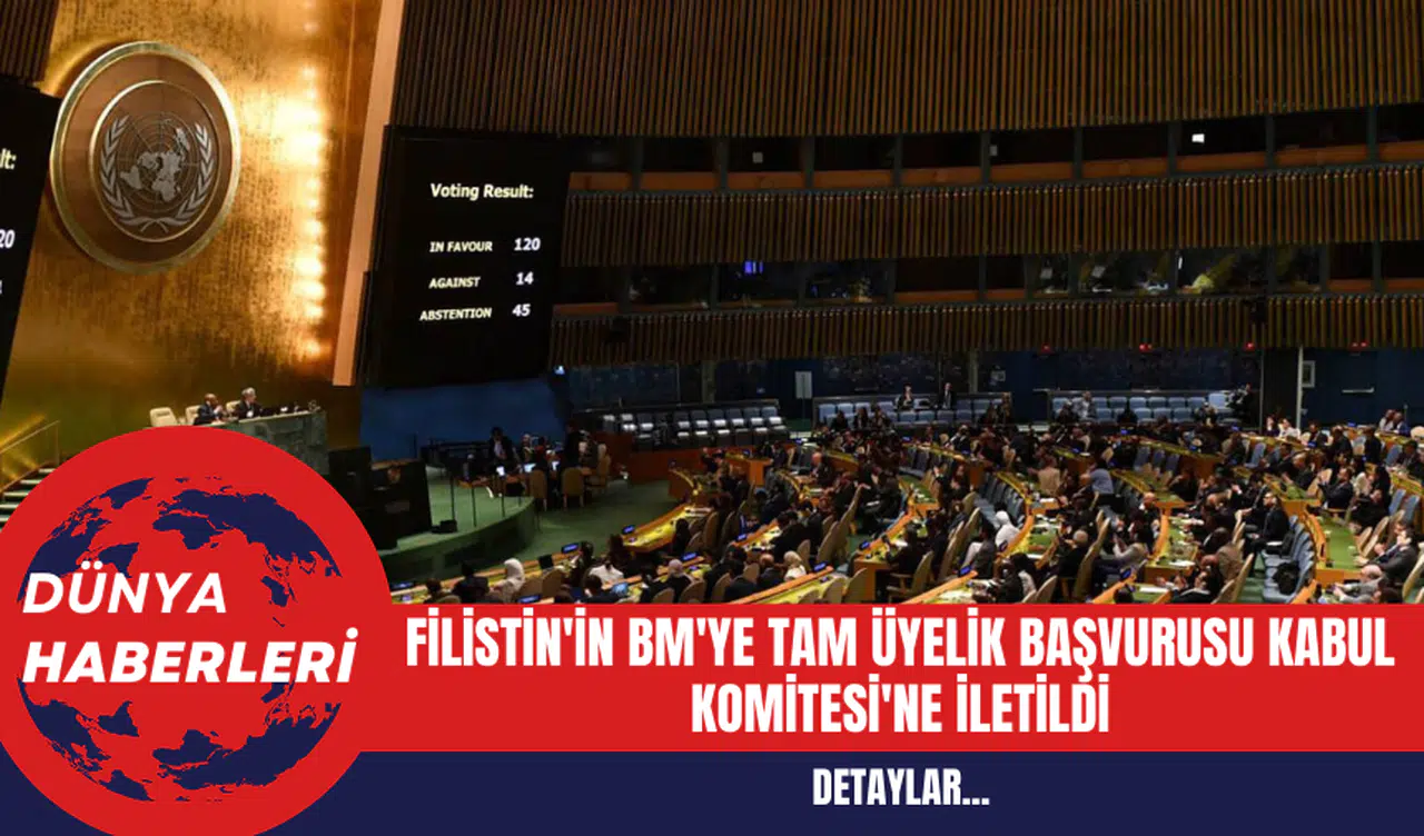 Birleşmiş Milletler Güvenlik Konseyi, Filistin'in Birleşmiş Milletler'e tam üyelik başvurusunu Kabul Komitesi'ne iletti. Başvuru, bu ay içinde görüşülecek.