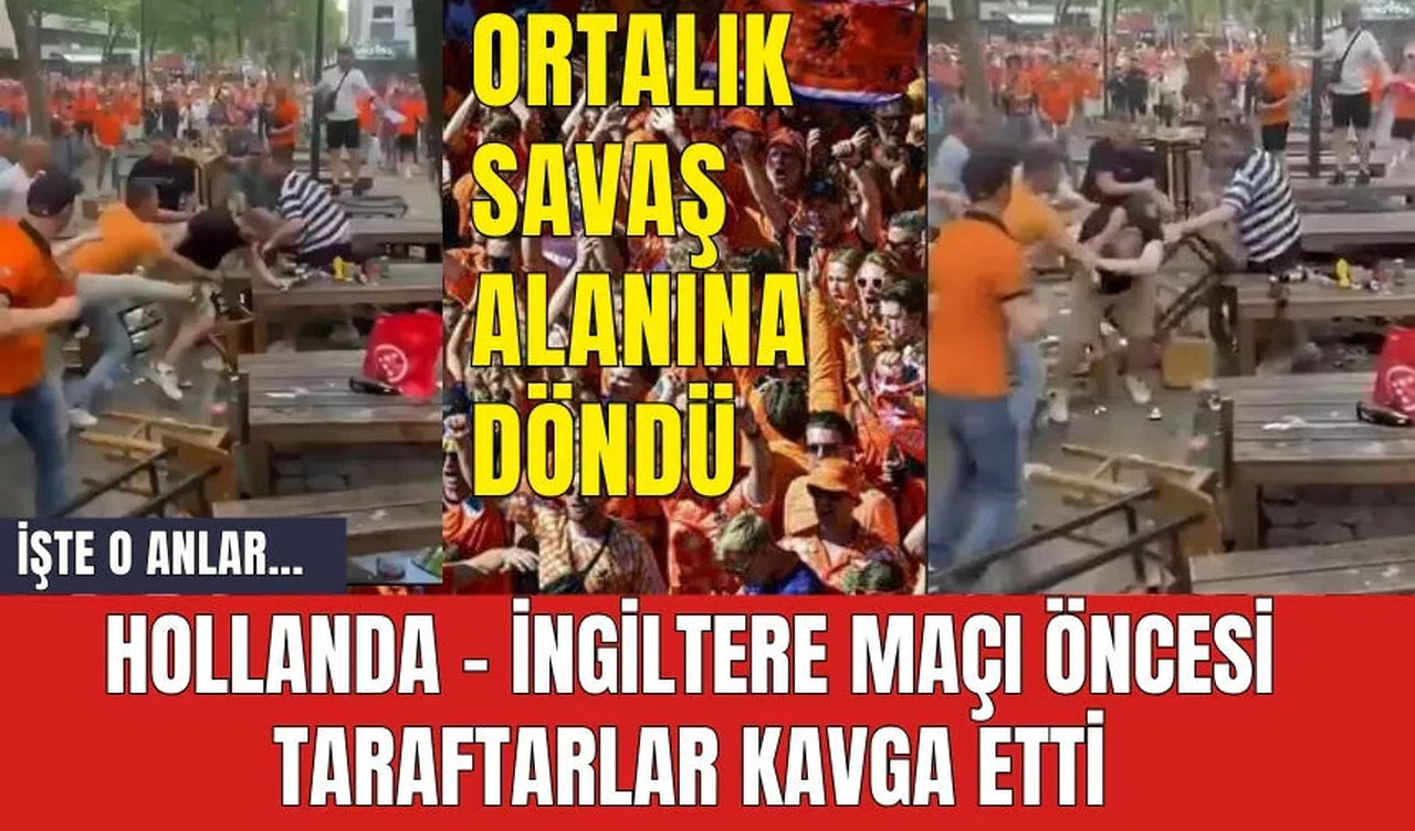 EURO 2024 yarı final karşılaşmasında Hollanda ve İngiltere arasında oynanacak olan maç öncesinde taraftarlar arasında büyük bir gerginlik yaşandı. Bugün TSİ 22.00’da başlayan maç öncesinde, BVB Dortmund Stadı çevresinde toplanan taraftarlar arasında çıkan kavgada, şişeler ve sandalyeler havada uçuştu.