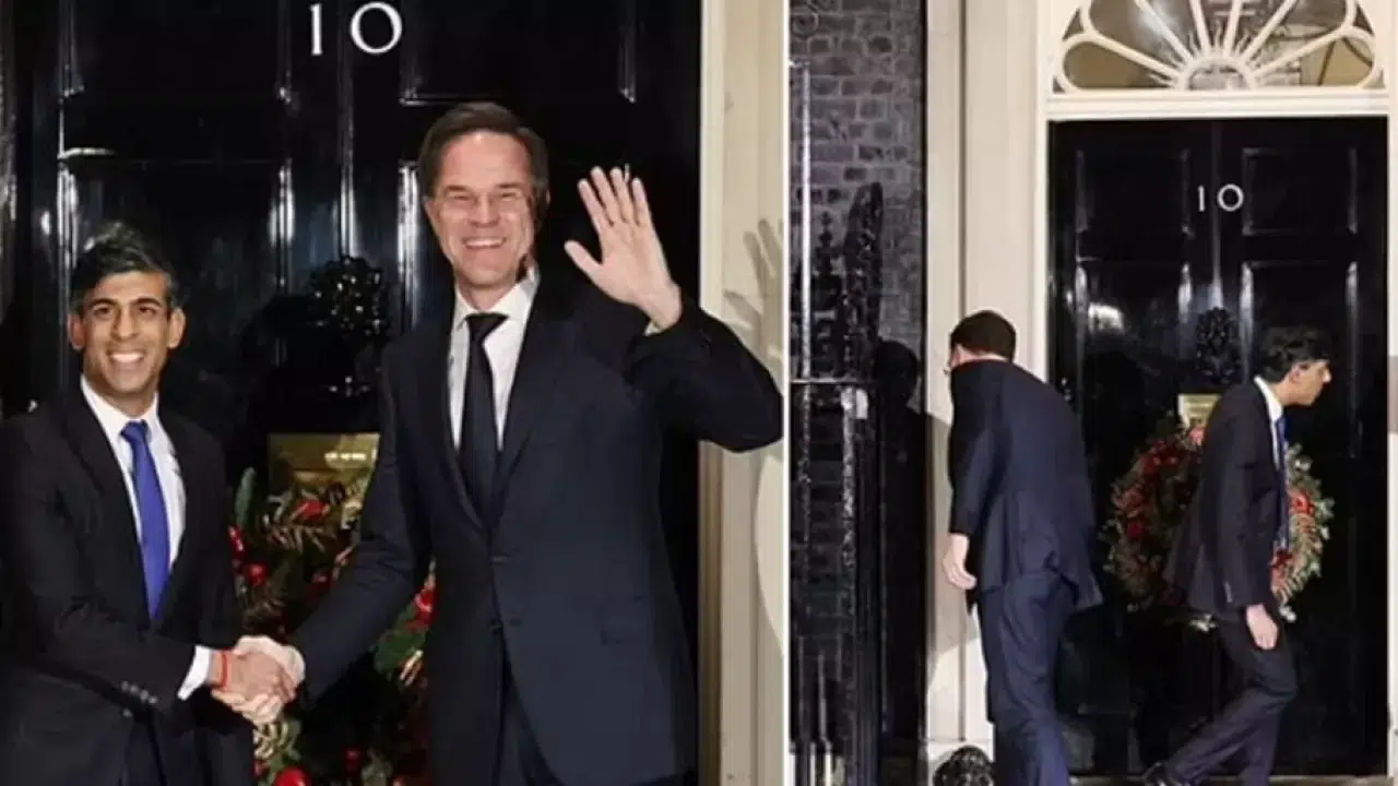 Sunak, Rutte'yi karşılamak üzere Başbakanlık Ofisi olarak bilinen 10 Numara'dan dışarı çıktı ve iki lider basına pozlar verdi. Ancak fotoğraf çekiminin hemen ardından liderler, içeri giriş kapısının içeriden kilitli olduğunu fark edince bir süre şaşkınlık yaşadılar. Kapıda kaldıklarını fark eden iki başbakan, ofis binasına girebilmek için çevreyi kontrol etmeye başladı. İçeriden bir görevlinin müdahalesiyle kapı açıldı. Liderler içeri girerken, bu kısa süreli kriz basın mensupları arasında gülüşmelere neden oldu.