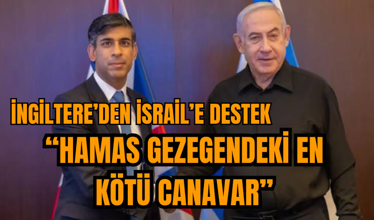 Netanyahu, Hamas'ı "yeni Naziler ve yeni IŞİD" olarak nitelendirerek, savaşın "özgür dünya için bir savaş" olduğunu söyledi. Lider, savaşın iki güç arasında gerçekleştiğini ifade ederek şunları söyledi: "Burada iki güç var. Biri İran'ın başını çektiği ve Orta Doğu'yu Orta Çağ'a geri döndürmek isteyen şeytani bir güç. Diğeri ise ilerleme ve insanlığın gücü. Sunak ise "İsrail'in uluslararası hukuka uygun olarak kendini savunma hakkını desteklediğini" ve "Hamas'ın peşine düşeceğini" söyledi. Britanya Başbakanı, Hamas'ı "modern barbarlar" ve "gezegendeki en kötü canavar" olarak nitelendirdi.