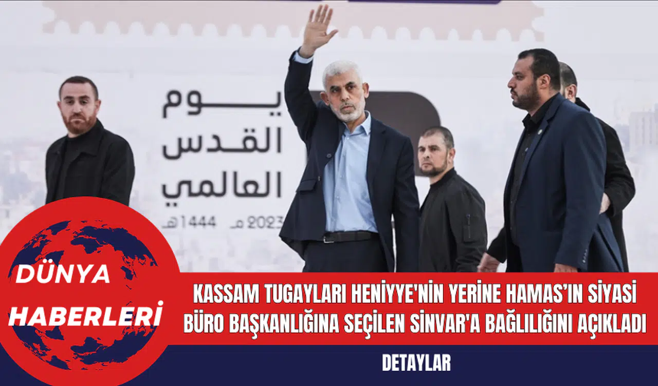 Hamas'ın askeri kanadı olan İzzeddin el-Kassam Tugayları, Yahya Sinvar'ın Hamas'ın siyasi büro başkanlığına seçilmesini desteklediğini açıkladı. Yapılan açıklamada, Sinvar'a olan bağlılıklarını ve onun liderliğinde hareket etmeye hazır olduklarını belirttiler.