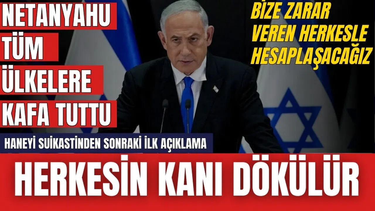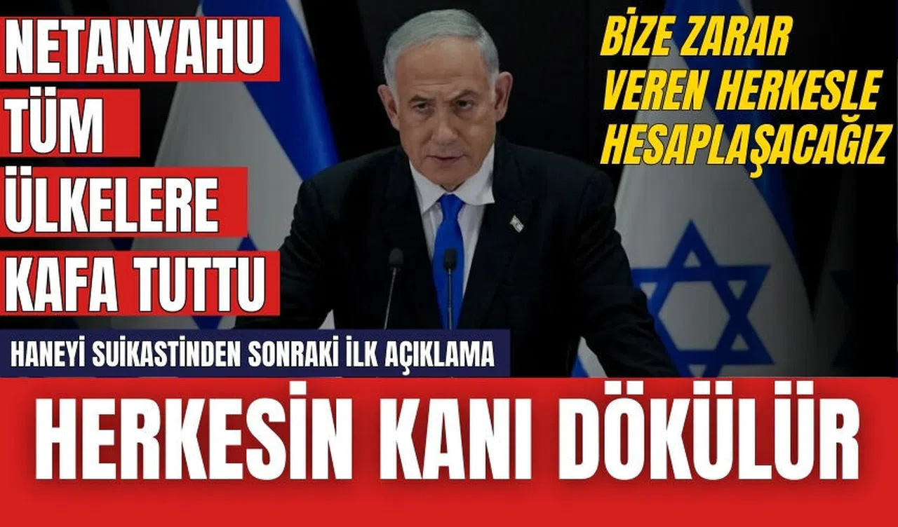 İsrail Başbakanı Binyamin Netanyahu, Hamas Siyasi Büro Başkanı İsmail Haniye'nin İran'da suikast sonucu öldürülmesinin ardından ulusa seslendi. Netanyahu, İsrail'in, İran'ın Husiler, Hamas ve Hizbullah olmak üzere üç ana vekiline "ezici darbeler" indirdiğini söyledi. Haniye’ye düzenlenen suikasta değinmeyen Netanayhu, İsrail’in dün Lübnan’ın başkenti Beyrut’a düzenlediği saldırıda öldürdüğü Hizbullah lideri Hasan Nasrallah'ın üst düzey danışmanlarından Fuad Shukr’un Majdal Shams'a düzenlenen saldırıdan doğrudan sorumlu olduğunu belirtti.